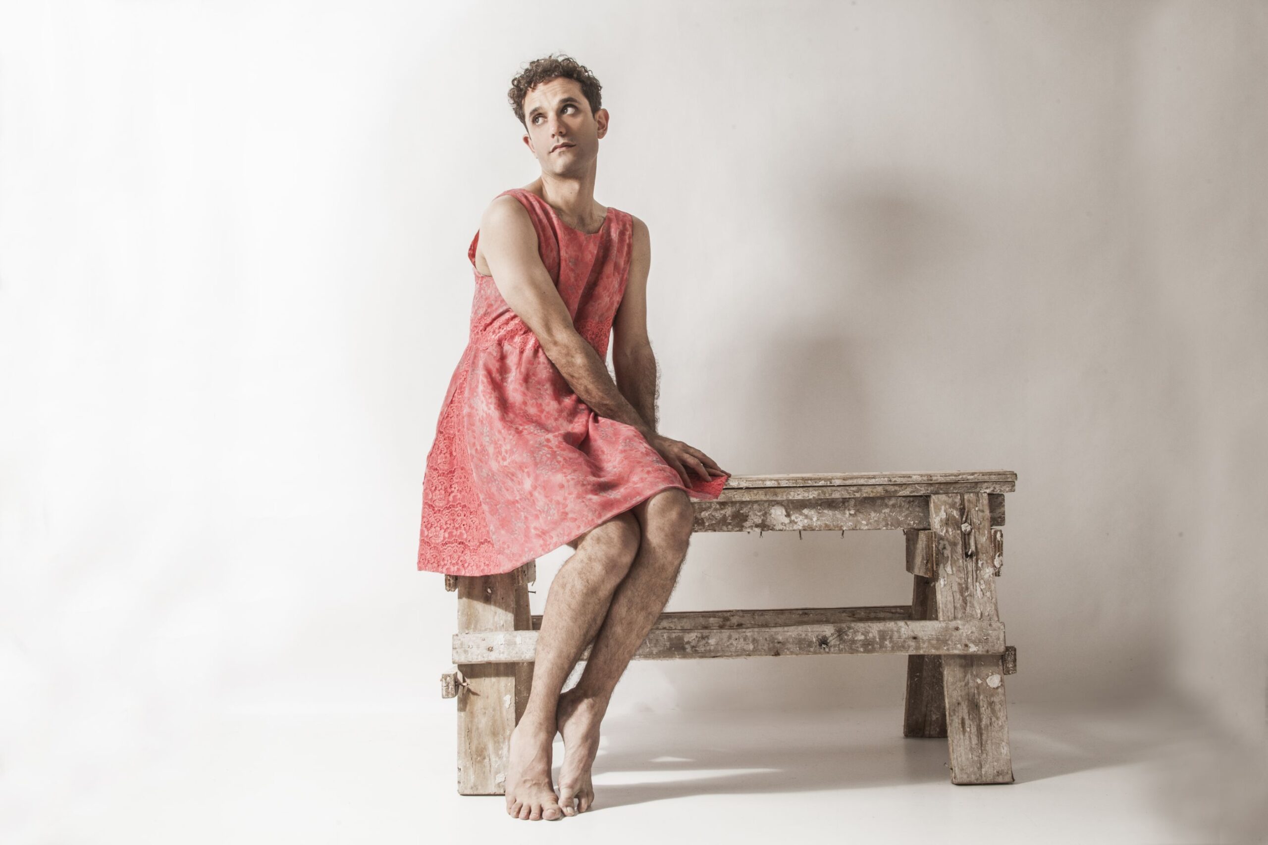 Todo lo contrario sucede en Sola no eres nadie, en donde se nos presenta al personaje vestido en un principio con una musculosa y boxers blancos a juego, descalzo. No mucho después, pierde la remera que traía puesta y, en su lugar, se pone un vestido rosa suelto que llega tan sólo un poco más arriba de las rodillas. Dije que sucede todo lo contrario en el vestuario de esta obra, porque a diferencia de la anterior, le otorga al actor total libertad para realizar desplazamientos por el espacio, sin las limitaciones que ropas muy ajustadas, polleras cortas o zapatos de taco alto (como en VSP) imponen a los actores.